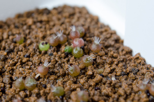 先日購入したレブチアの種(10種)と、うちで採れた研宝丸(1993年實生の苗のはう)の種を、7/3(日)に蒔きました。