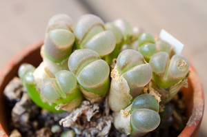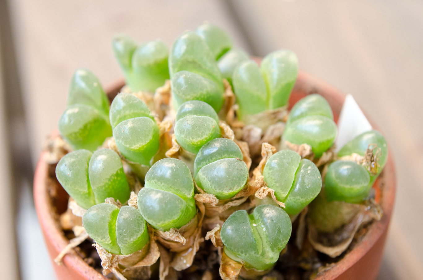 その時のオフタルモフィルム(Ophthalmophyllum – 現在はコノフィツム(Conophytum)に統合されたやうです)の樣子をご紹介します。