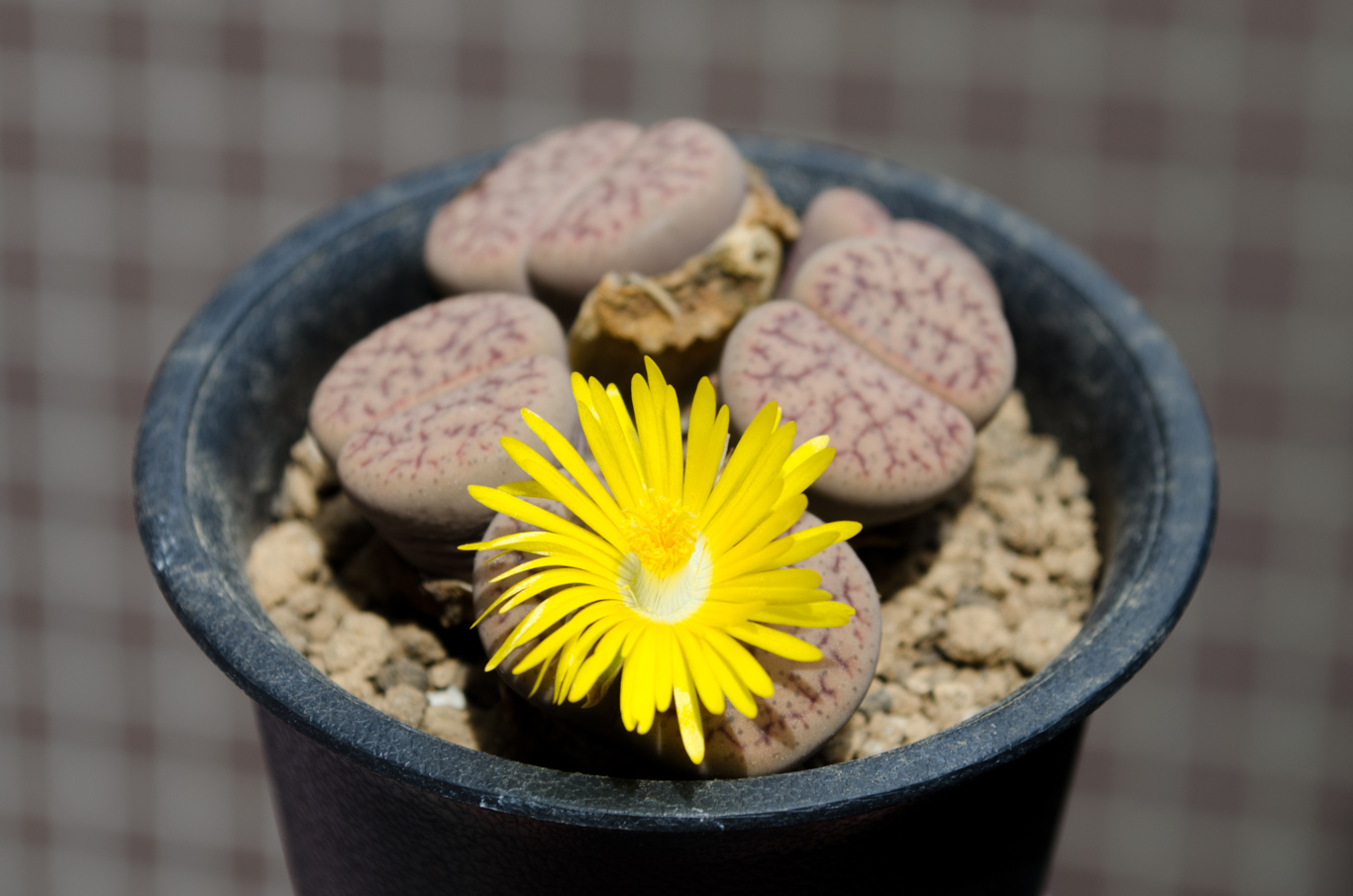 瑪瑙玉咲きました 2017-07-06 by henmix コメントする リトープスの瑪瑙玉(めのうぎょく – Lithops pseudotruncatella v. elisabethiae)が咲きました! 先週の金曜日の昼閒に咲きはじめたやうです(カミさん談)。 土曜日は生憎の天氣で開きませんでした。 そして日曜日の午後にやうやく開花を拝むことができました。 あまり開花の記憶がないのですが、改めて花を見ると綺麗ですね(笑)。 しかしこんな時期に咲くもんでしたつけ!? 狂ひ咲き!?