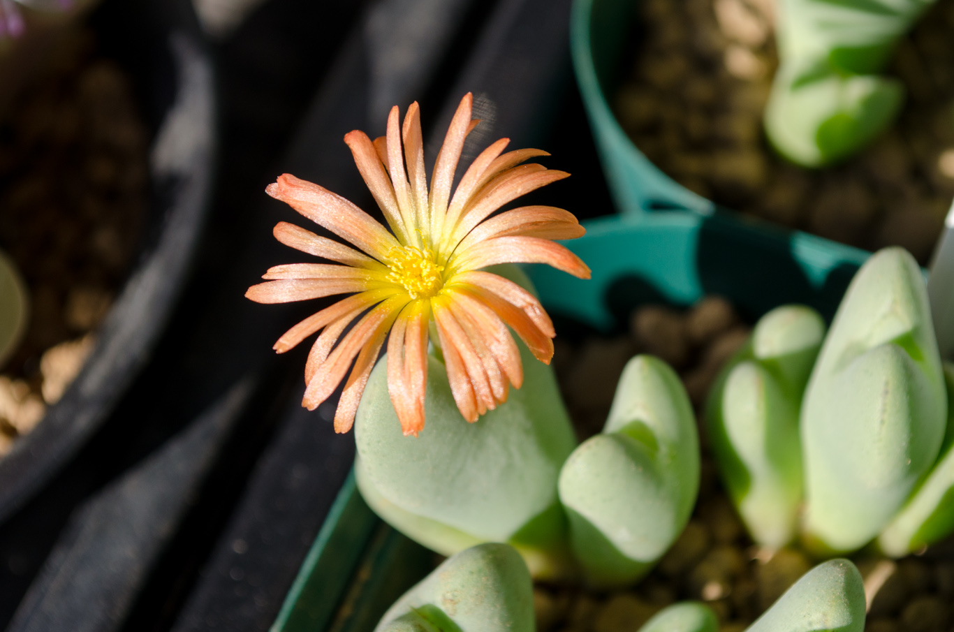古参コノフィツム 2018-11-08 by henmix コメントする 我が家の古參のコノフィツムも頑張つてをります。 まずは花園(Conophytum cv. ‘Hanazono’)です。 なかなか滿開にはならないのですが、長期閒咲き續けてくれます。 蟲も來てます♪ 兄弟株も健在です。 先日、多數の兄弟たちが、バザーで里子に出て行きました。 こちらは紫花祝典(C. cv. ‘Shukuten’)。 滿開になりました! 花園同樣、兄弟も健在です。こちらも滿開! 花園も祝典も昔からの園藝品種で、個人的にはとても愛着があります。ずつと維持していきたいですね!