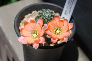 二代目のピグマエアとハーゲイ 2022-05-20 by henmix コメントする ピグマエア(Mediolobivia pygmaea M47)とハーゲイ(Mediolobivia haagei RH 568)の二代目が、それぞれ開花しました! ラベル見ないと分からないのですが、2017年か2018年に 實生したはず。あとで確認しよう。 こちらはピグマエア。 初代はイマイチ花つきが惡く、どうしたものかと思つてゐたので、二代目が咲いてくれるやうになつたのは難有いですね。 こちらはハーゲイ。 初代は先日投稿した通り元氣です。 こちらは昼に日が差してから撮つた寫眞です。 やはり天氣が良いはうが映えますね(笑)。